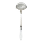 The Aladdin Antique Soup Ladle features elegant pearlized handles with the strength of high-grade acrylic and 18/10 stainless steel. This piece is also available in our brilliant finish.