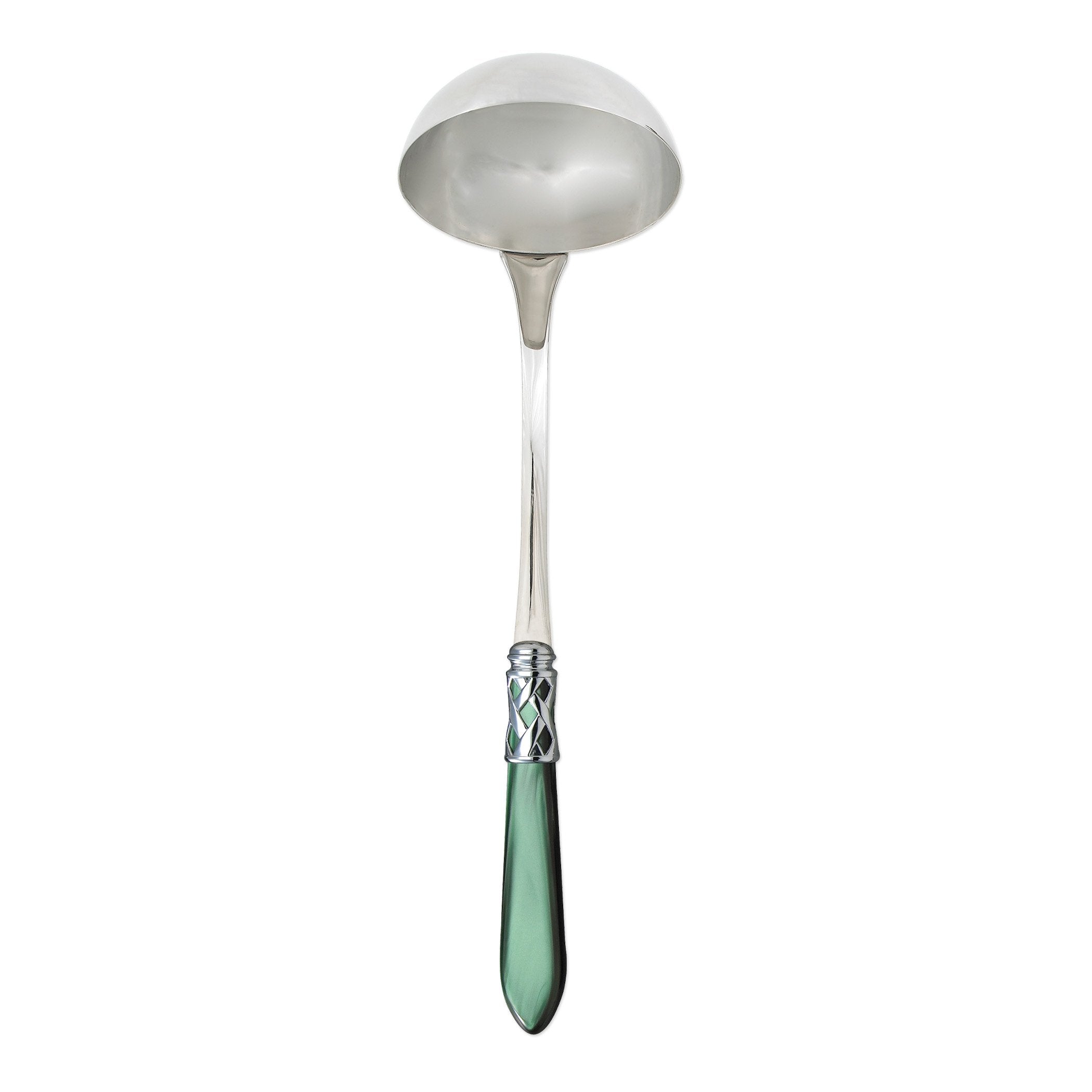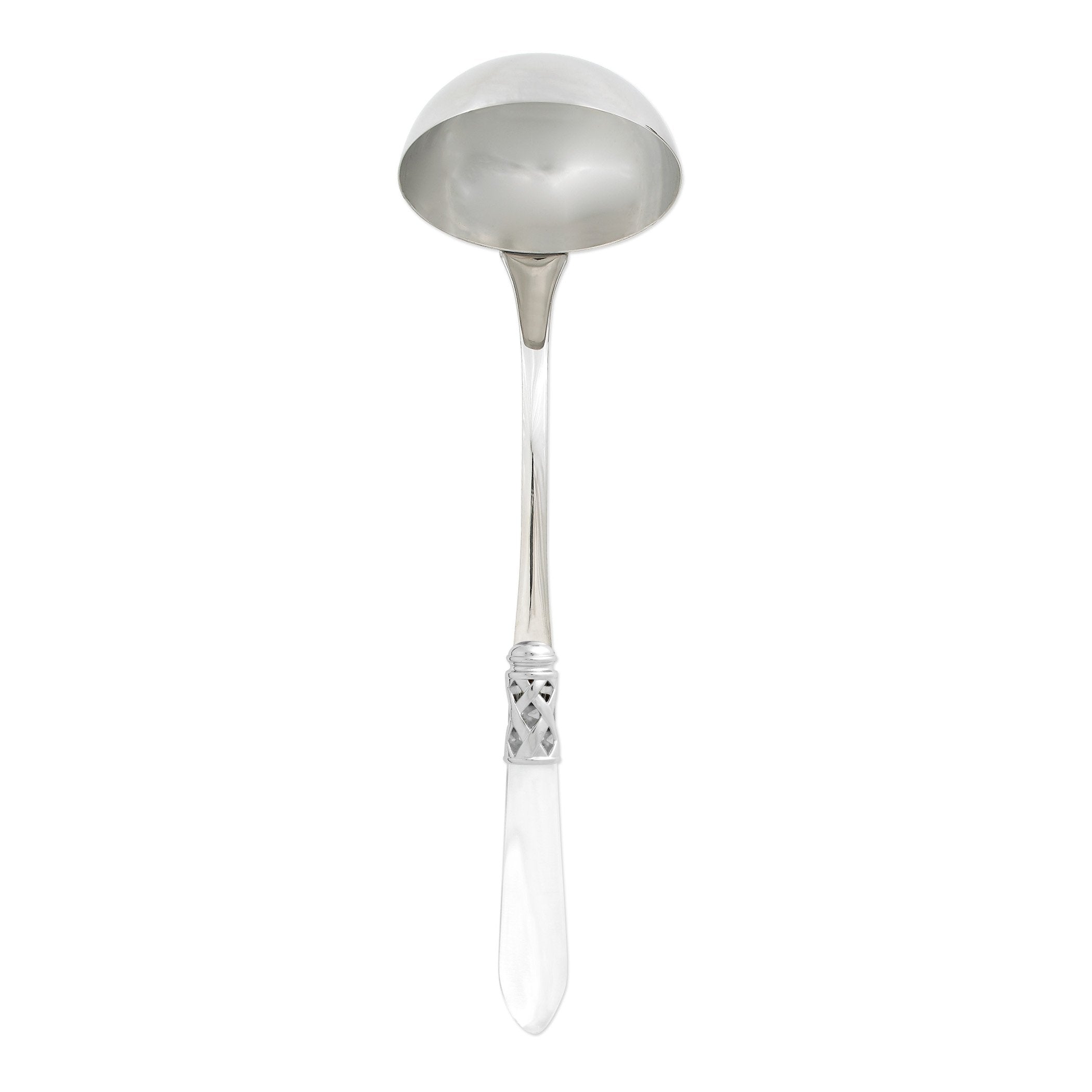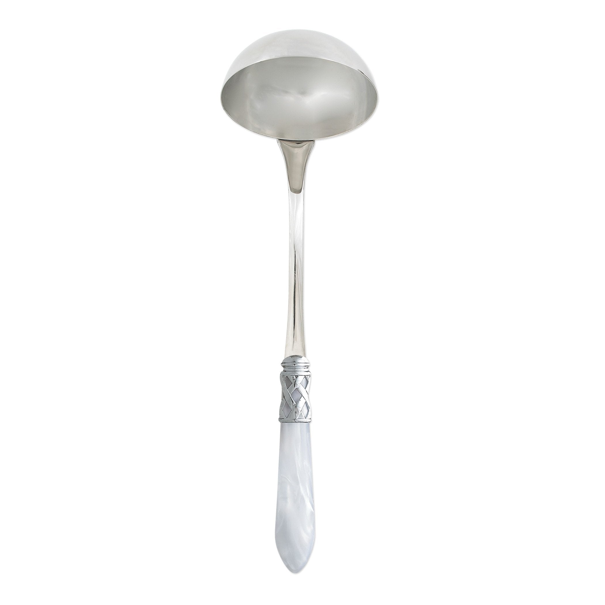 The Aladdin Brilliant Soup Ladle features elegant pearlized handles with the strength of high-grade acrylic and 18/10 stainless steel. This piece is also available in our antique finish.