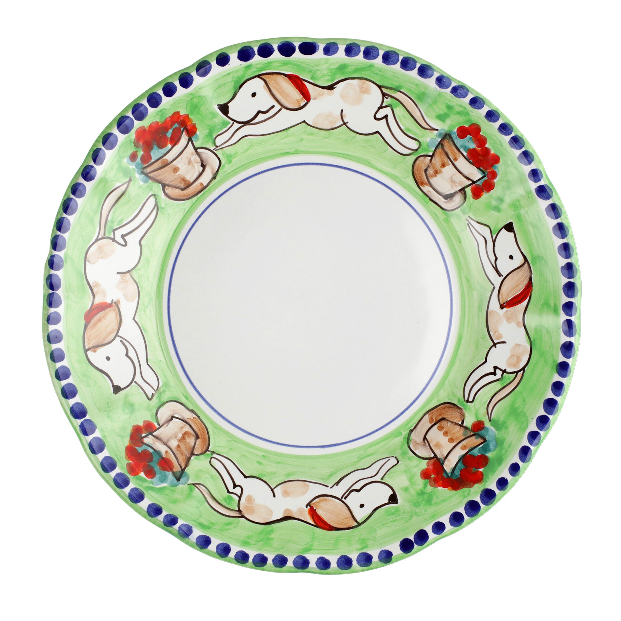 From the famed Amalfi Coast, Campagna, our flagship dinnerware, offers endless possibilities for artistic entertaining with colorful patterns that capture the vitality of the Italian countryside. Our newest design, Cane, features whimsical handpainted pups playfully running through a seaside garden in Positano on the Campagna Cane Service Plate/Charger.