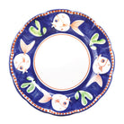 The colorful blue and red Campagna Pesce Service Plate/Charger features whimsical handpainted fish swimming among green algae.