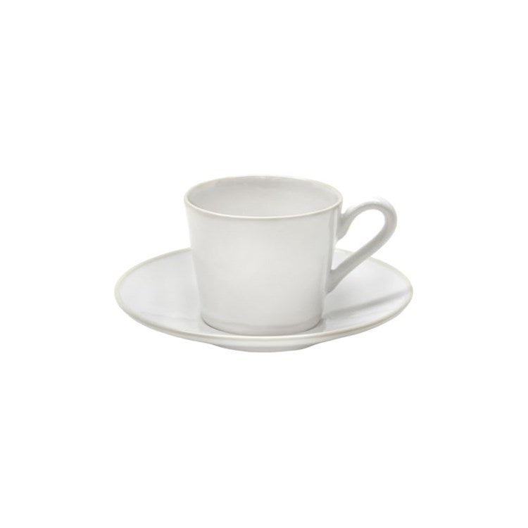 Elevate your daily ritual with this TEA/COFFEE CUP & SAUCER from Costa Nova USA. The 6 oz set showcases a classic white finish accented by a cream rim from the BEJA collection. Perfect for savoring tea or coffee, it brings simple elegance to breakfast nooks, office breaks, and relaxed entertaining.