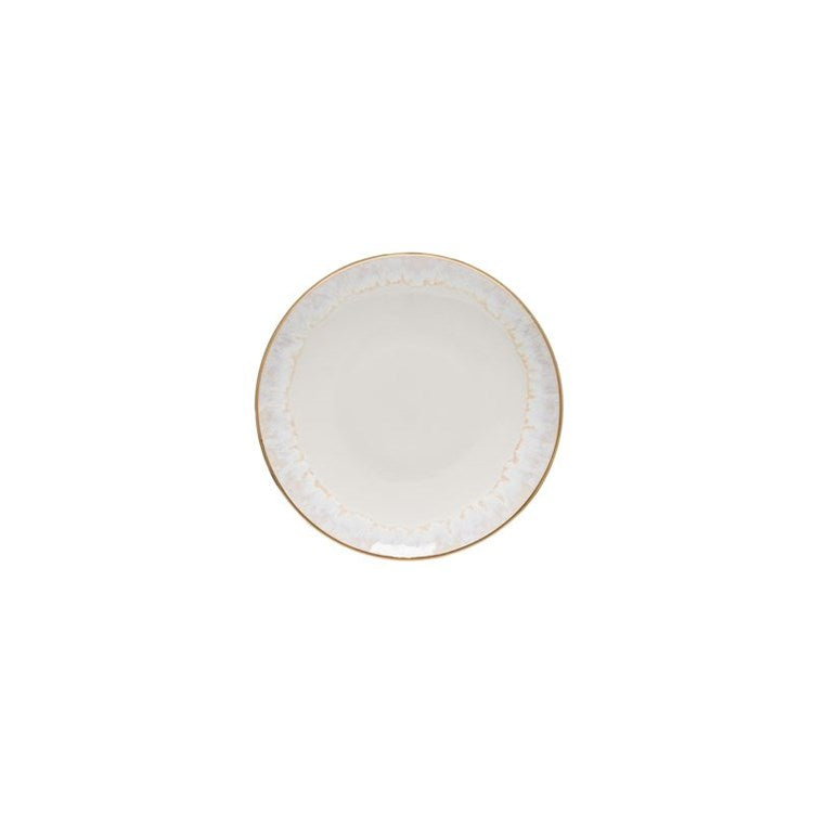 Elevate your table with the Costa Nova USA Bread Plate in crisp white, accented by a graceful gold rim. Part of the Taormina style, this compact plate brings understated elegance to bread service, appetizers, or small bites, making it a versatile finishing touch for both everyday meals and celebratory settings.