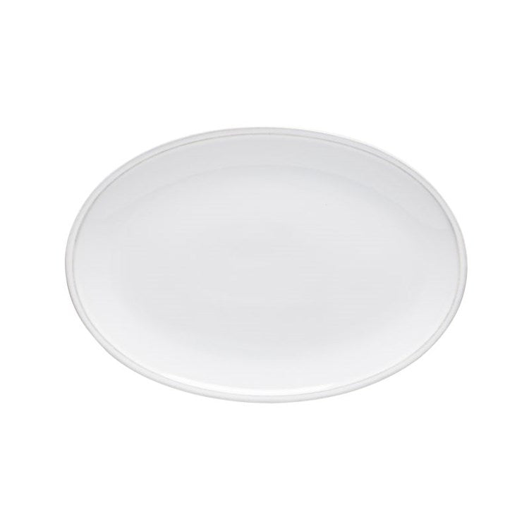 This Costa Nova USA FRISO steak plate features an oval 13-inch shape in classic white, ideal for serving steaks, chops, and generous entrées. Its streamlined design complements any table setting, offering ample space for mains and sides. A versatile addition to everyday meals and special occasions.
