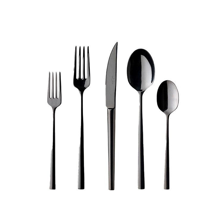 Elevate your table with the Costa Nova USA VELA Flatware 5-Piece Set in black. This sleek, modern set brings cohesive style to everyday meals and special occasions alike. Comfortable to hold and easy to coordinate, the versatile five-piece ensemble adds a refined, contemporary touch to any place setting.