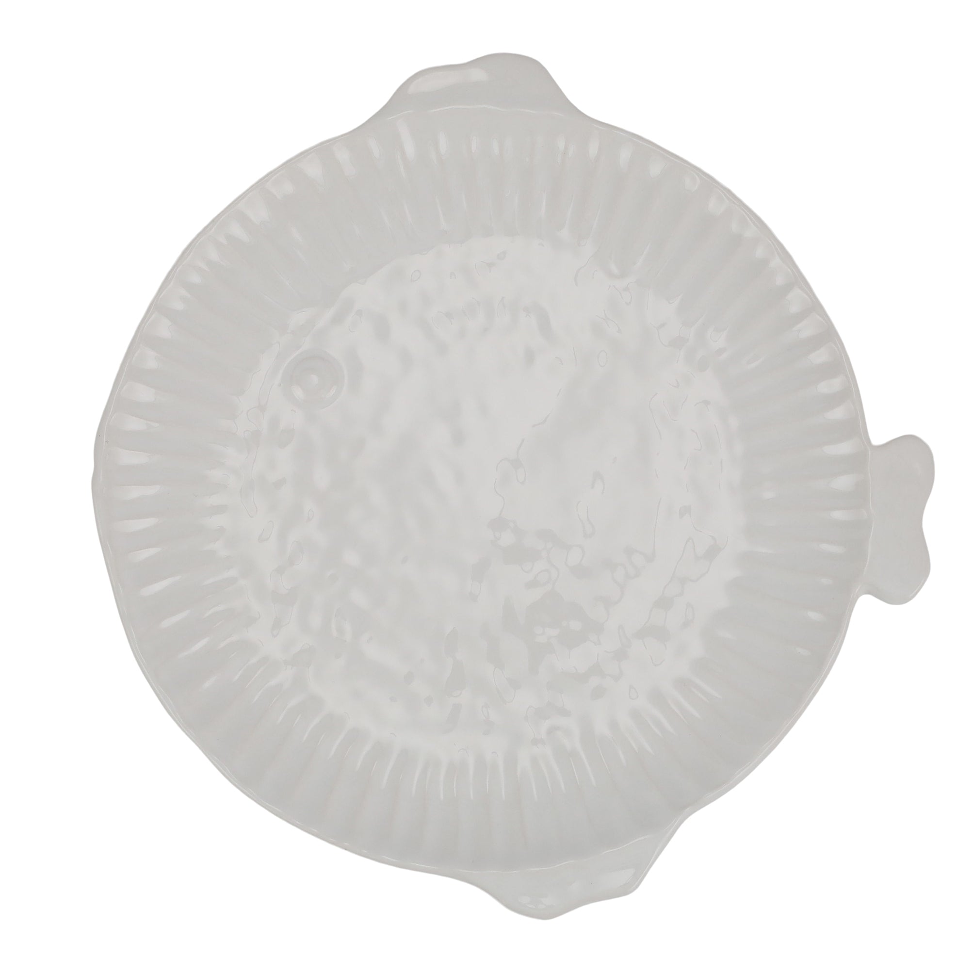 Playing off the handpressed edges of Pietra Serena, the Pesca Serena Dinner Plate has charming fish details to create a playful yet sophisticated coastal table.