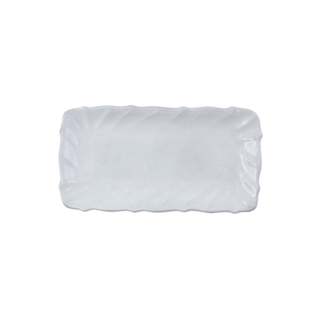 Italian for enchantment, Incanto is inspired by Italy's art, landscape, and Venetian history. The ruffle designs on the Incanto Ruffle Rectangular Tray suggest the soft ripples of the Adriatic Sea and add beautiful detail to whatever you serve. We also like this tray on a console as decor.