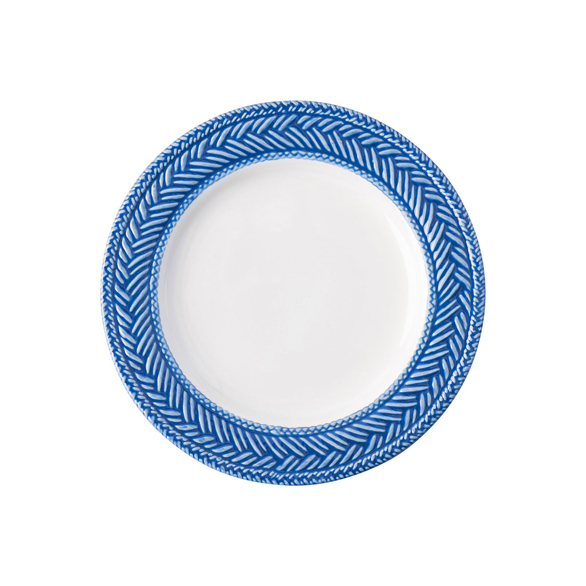 The Le Panier Side/Cocktail Plate in Delft Blue by Juliska offers a chic touch to any table setting. With its elegant design and iconic basket weave pattern, this versatile plate is perfect for serving appetizers or desserts. Elevate your dining experience with this timeless piece.