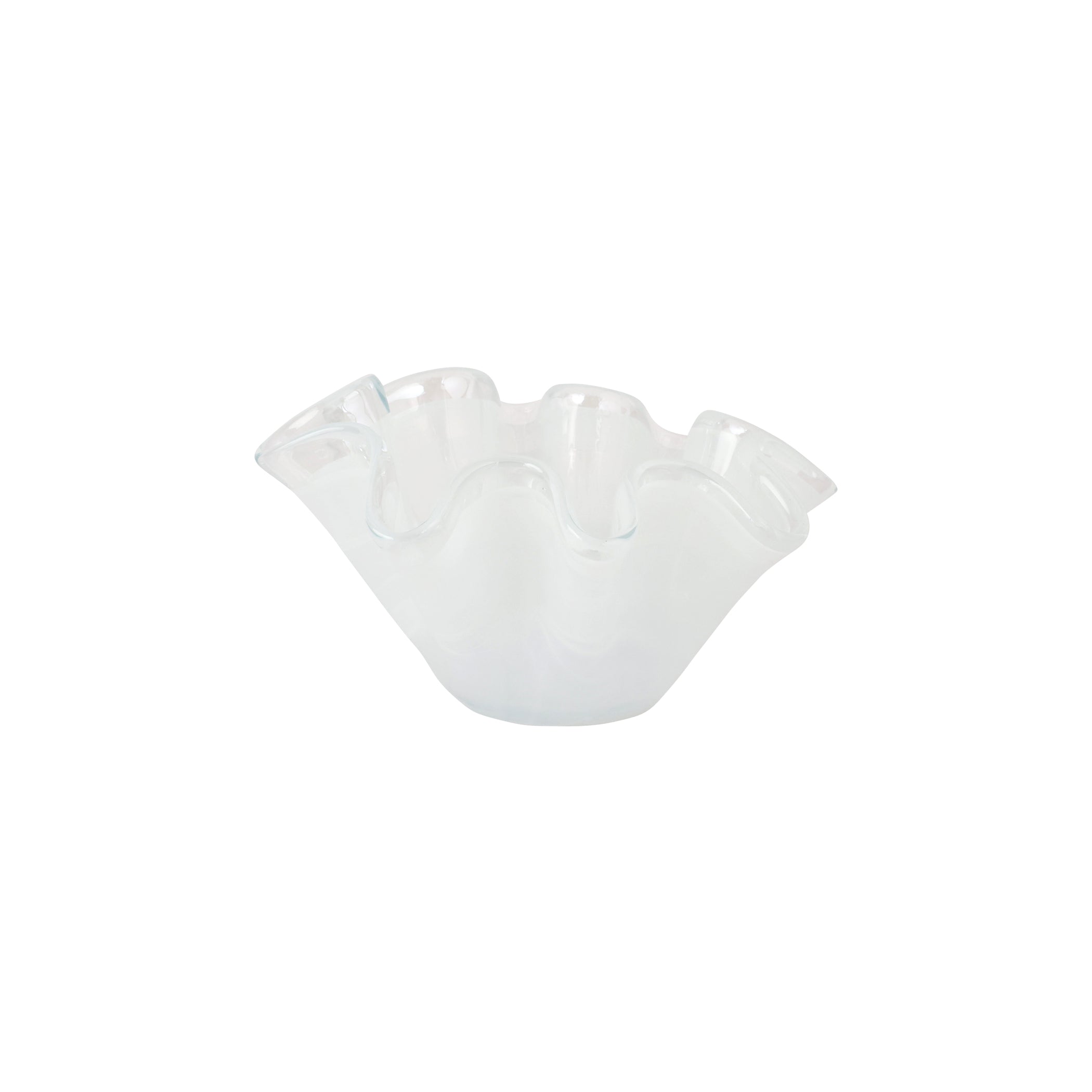 Mouthblown in Italy, the Onda Glass Petite Ruffled Round Bowl makes a sophisticated statement on its own or as part of a larger Onda collection.