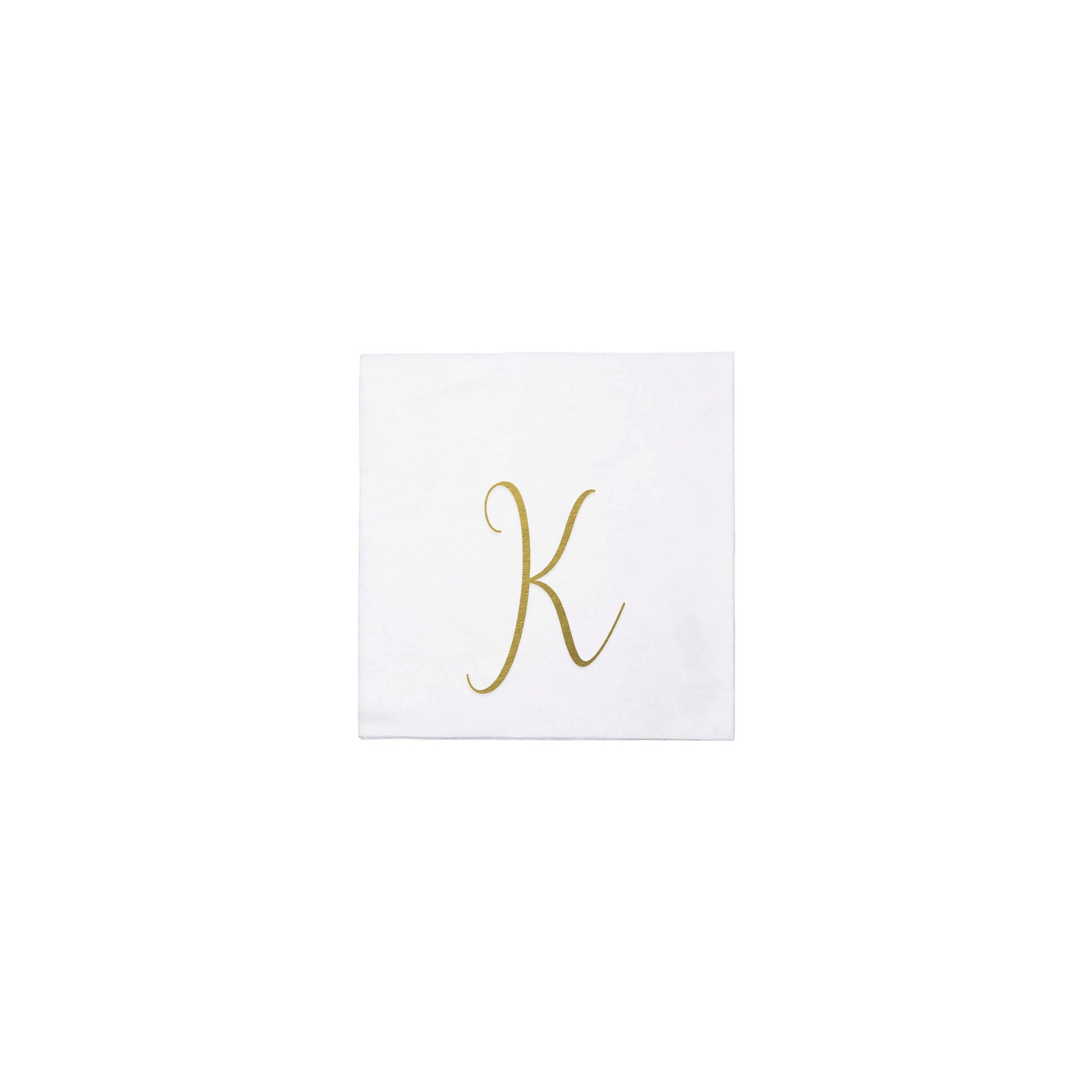 Papersoft Napkins Gold Monogram Cocktail Napkins - K (Pack of 20)