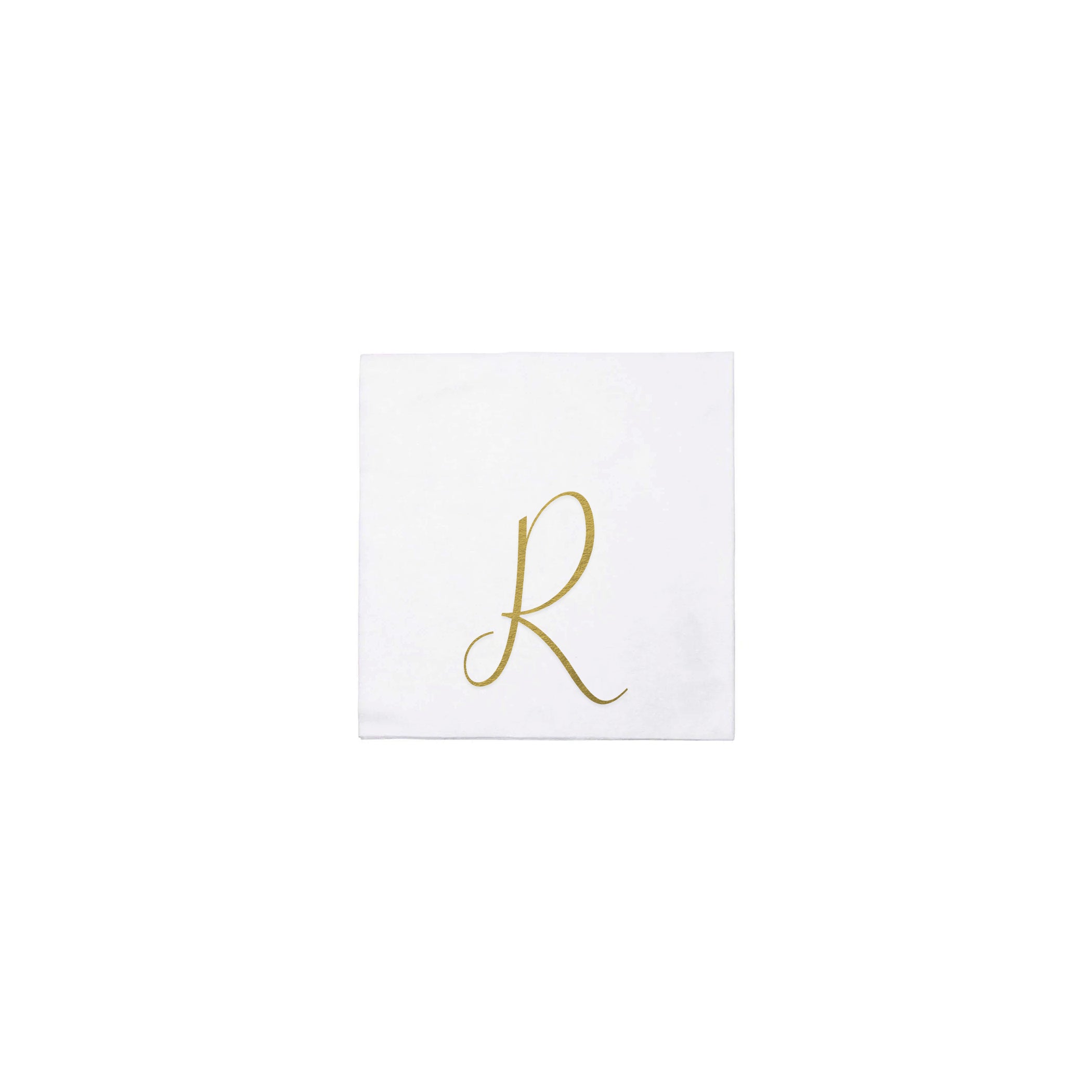 Papersoft Napkins Gold Monogram Cocktail Napkins - R (Pack of 20)