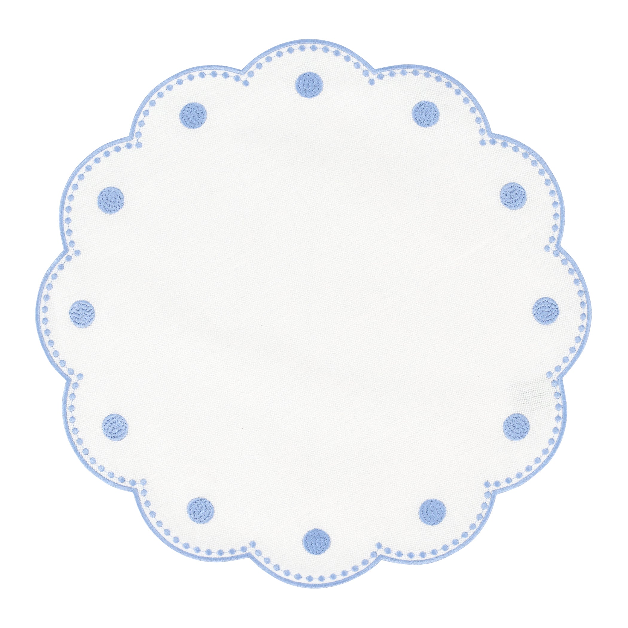 Tessuti White Round Placemats with Cornflower Blue Dots - Set of 4