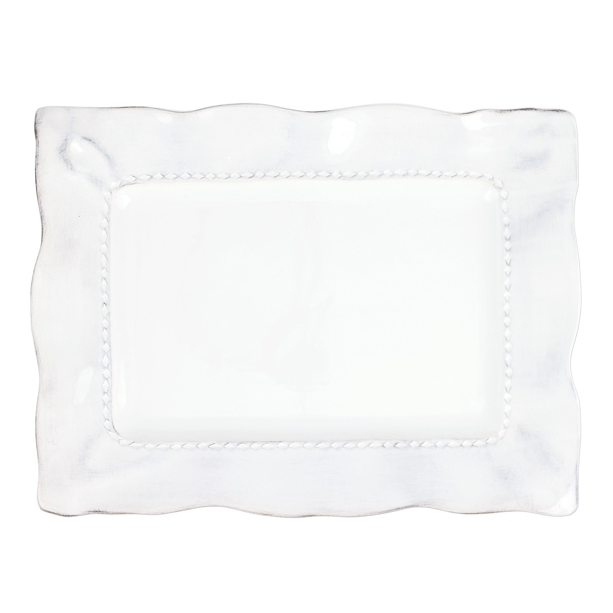Both relaxed and refined, Giorno captures casually elegant Italian style. A wreath of precise etchings encircle each Giorno Rectangular Platter, and the nuanced glazing is done in a way that brings patina to each piece.