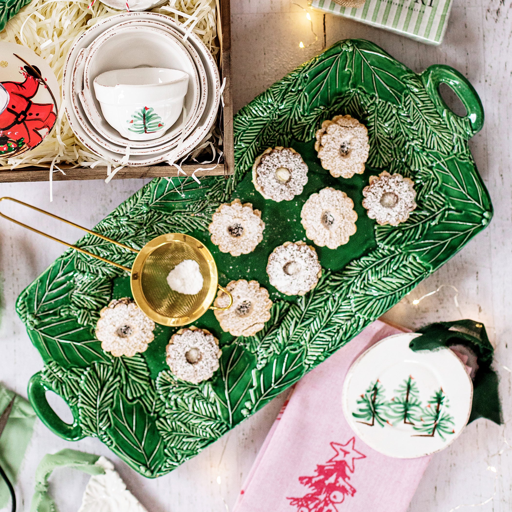 Lastra Holiday Green Figural Handled Rectangular Platter