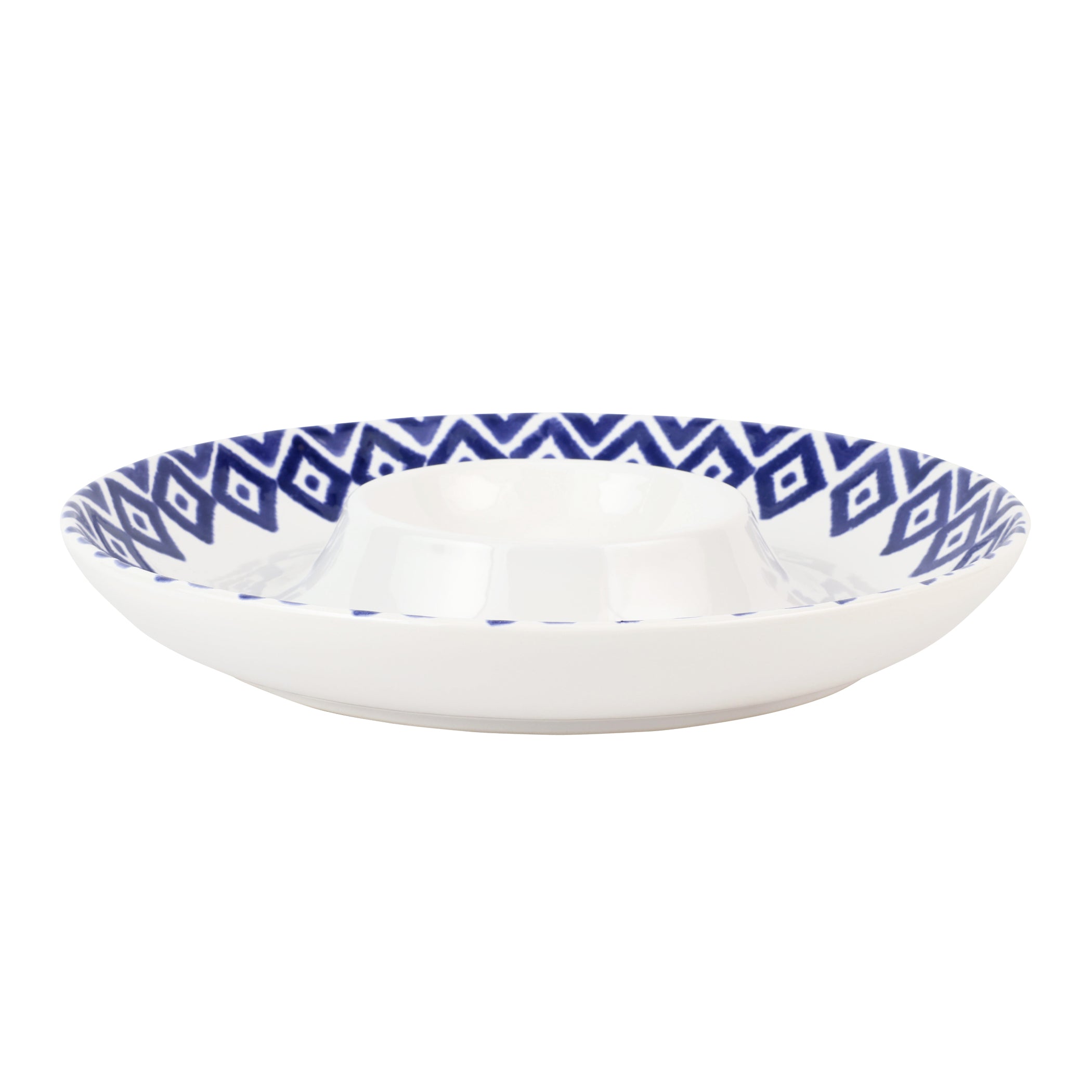 Both easygoing and striking, the Santorini Diamond Chip and Dip is inspired by the colors of the Greek Isles, and it brings fun and panache to your entertaining.