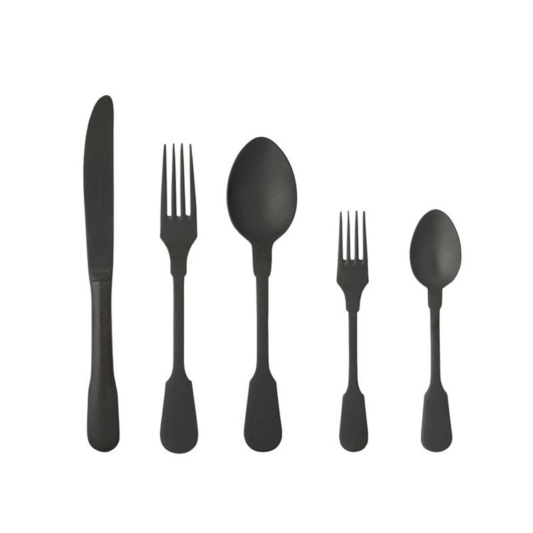 Elevate everyday meals with the Costa Nova USA FLATWARE 5PC SET-BLACK (SAGA). This sleek, black set provides a complete place setting for one, pairing effortlessly with modern or classic tableware. Designed for stylish versatility, it brings cohesive, contemporary flair to weeknight dinners, special occasions, and everything in between.