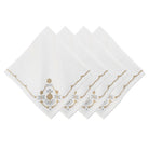 Elevate your dining experience with the Heidi Embroidered Napkin Set by Juliska. This exquisite set of four napkins features intricate gold and silver embroidery, adding a touch of elegance to any table setting.