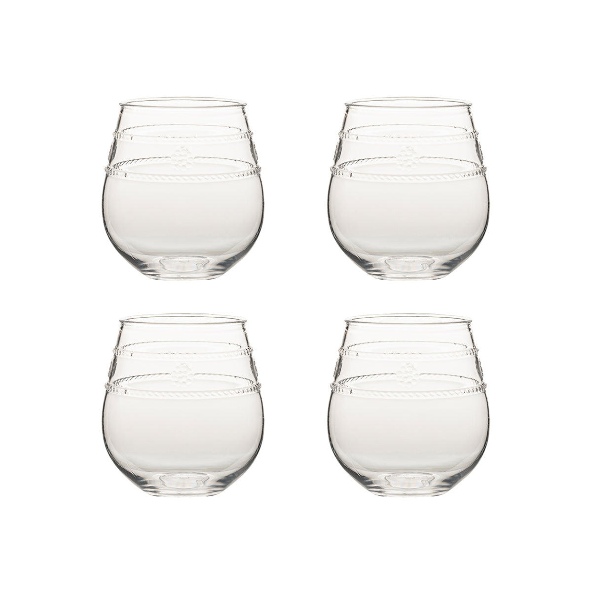 Discover the elegance of Juliska's Isabella Acrylic Stemless Wine Glass Set. Ideal for any occasion, this set of four combines sophistication with practicality. Perfect for indoor or outdoor dining, these glasses offer a touch of French-inspired charm to your table setting.