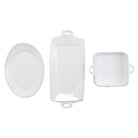 Beloved for its sophisticated simplicity, versatility, and durability, Lastra is our bestselling collection. The Lastra White 3-Piece Hostess Set includes the Lastra White Square Baker, the Lastra White Handled Rectangular Platter, and the Lastra White Small Oval Platter. It is a beautiful set for anyone who likes to cook or entertain. Lastra’s design was inspired by the circular wooden slabs used for centuries to create the outer mold in cheesemaking throughout Italy. When fashioned together with twine, the hoop was left with a slight overlap to help maintain the shape of the cheese mold. Maestro molder Stefano Roselli incorporates the overlapping detail into the entire design, from its foot to its rim. A dark dusting on the edges of each piece suggests the ash that was used to preserve these cheeses and highlights each unique silhouette.