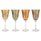 Ornate emblems and decorations that are indicative of royalty inspired this unique drinkware collection. The Regalia Assorted Wine Glasses are handpainted in 14-karat gold.