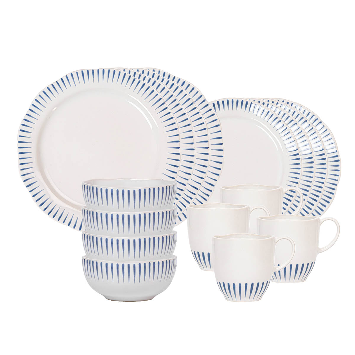Sitio Stripe 16pc Place Setting - Delft Blue (STS01/44, STS02/44, STS07/44, STS46/44)