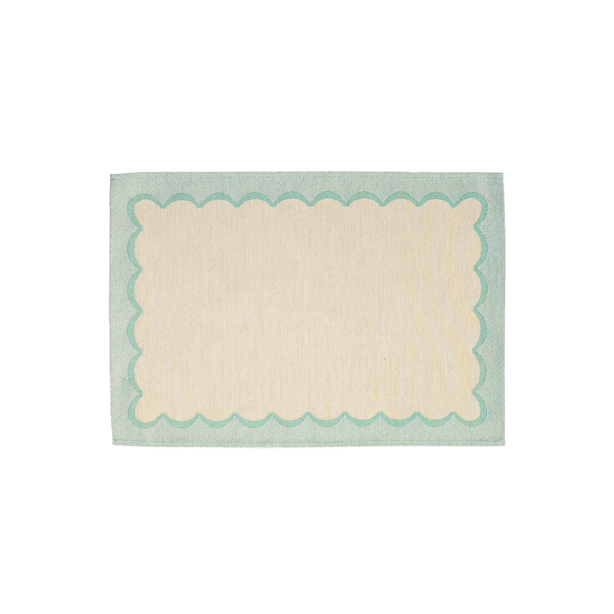 Create an inviting atmosphere with the Tavola Aqua Scalloped Placemats, featuring jacquard stitching and a soft color palette.
