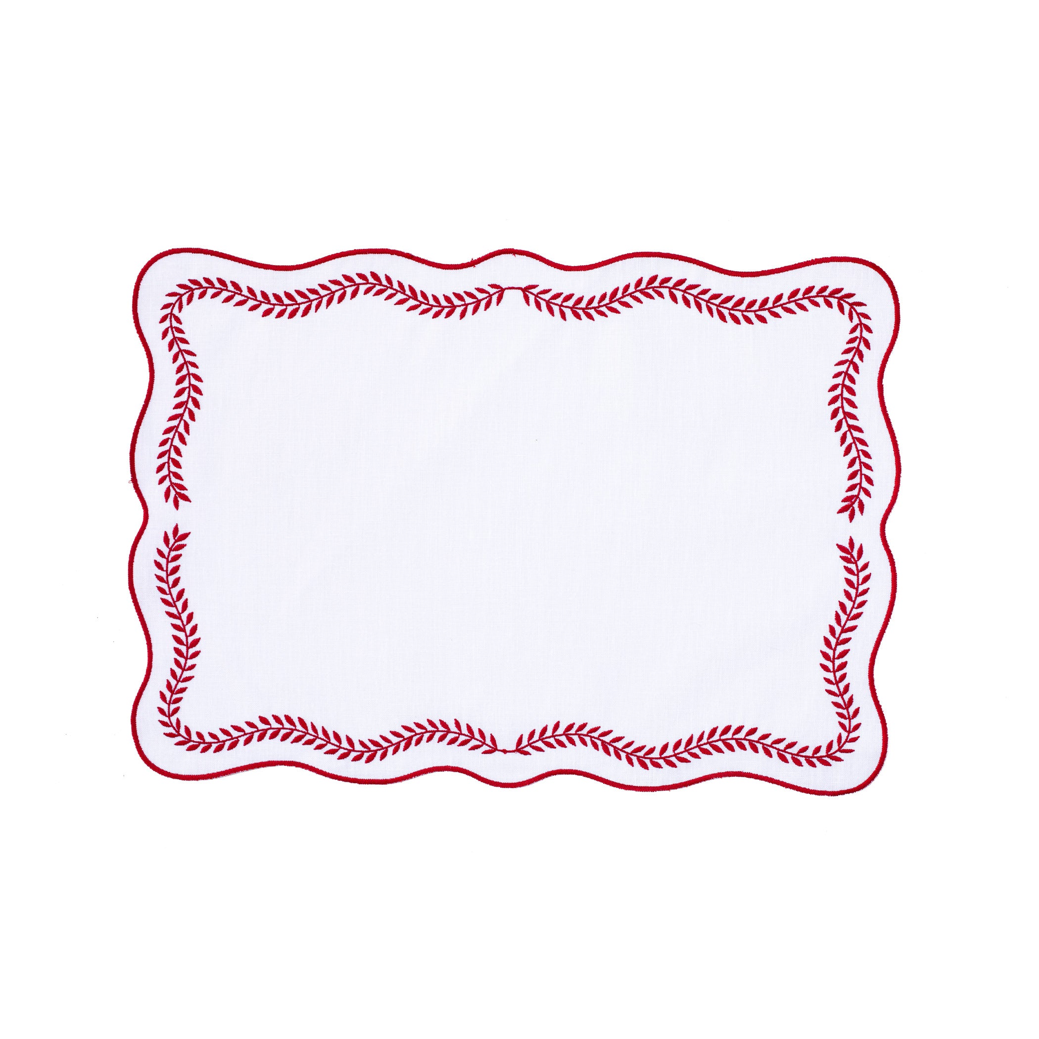 Tessuti White Rectangular Placemats with Red Ivy - Set of 4