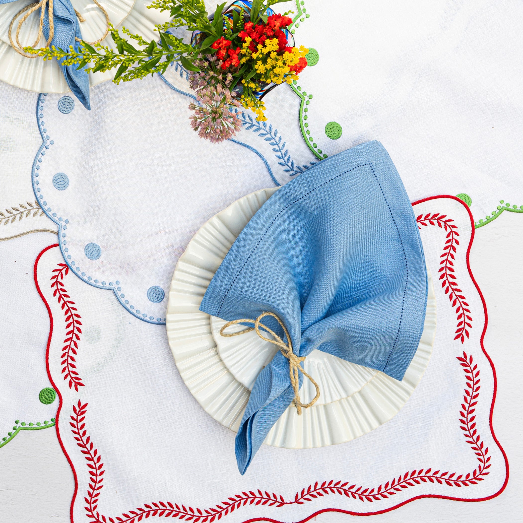 Tessuti Linens are the epitome of easygoing elegance. The Tessuti Rectangular White Placemats with Red Ivy are made of 100% linen with a light acrylic coating, assuring they remain stain resistant and a breeze to wipe clean.