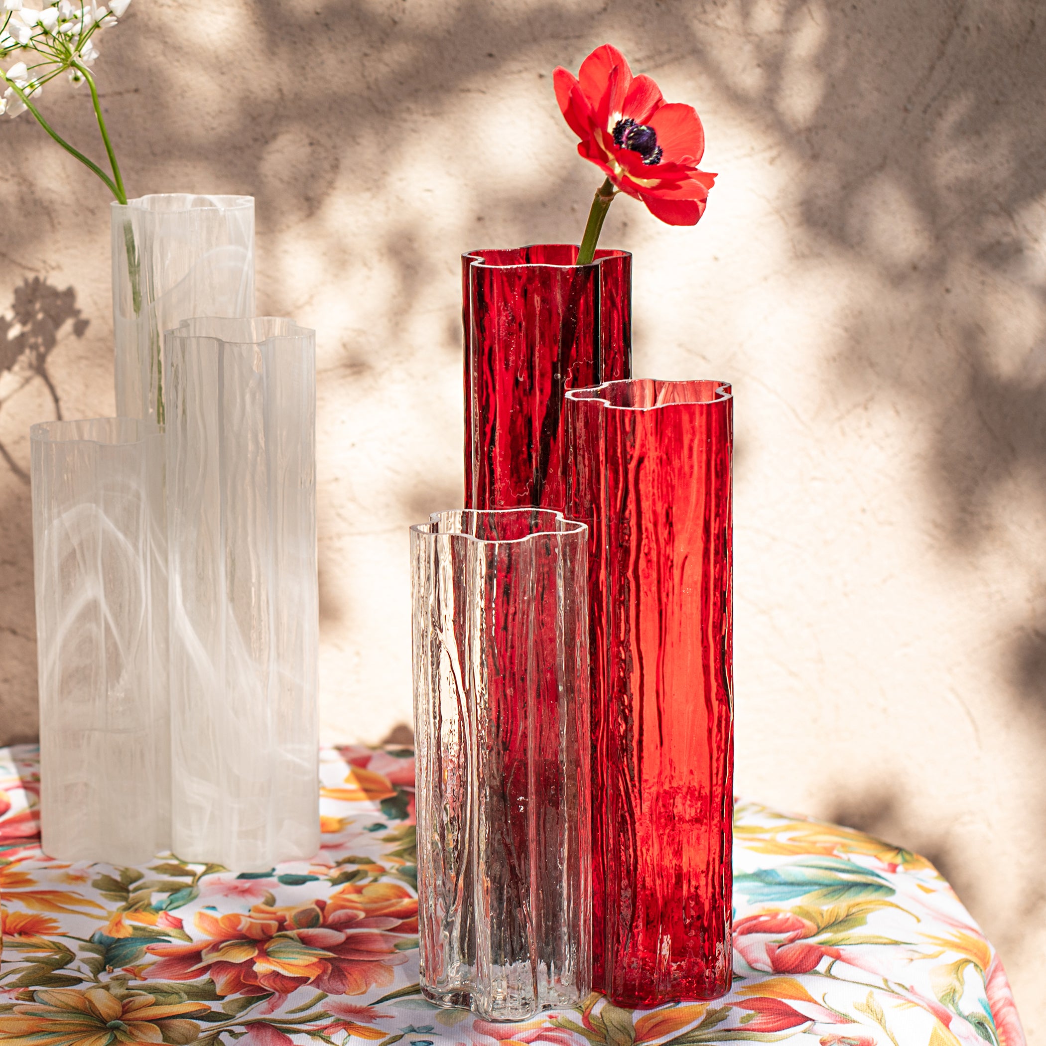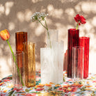 Mouthblown and striking, the Flora Glass Amber Vase is a trio of vases designed for a small arrangement. The like colors create a sophisticated ombre effect in your home.