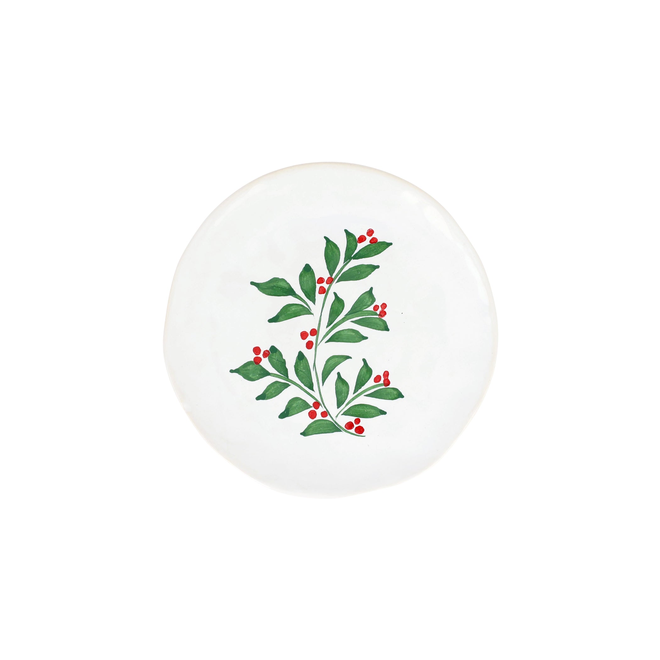 The Aria Holiday Cocktail Plate brings crisp, festive delight with its detailed depictions of the holly branch and berries on a lush, white background. Jolly for the holidays and perfect for the months that follow, this dinnerware will be a treasured part of your winter entertaining.