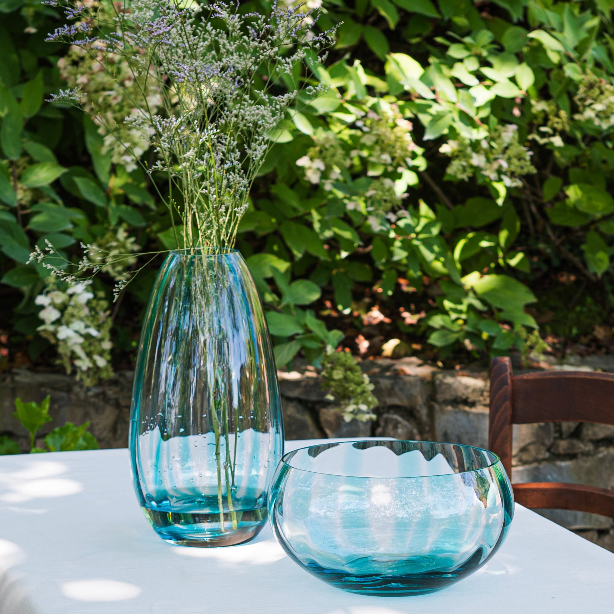 The Bolla Glass Blue Pleated Centerpiece blends high quality with high design, adding a sophisticated touch to any setting. Featuring a pleated texture in a sleek blue hue, this centerpiece is perfect for showcasing flowers or as a striking stand-alone piece.