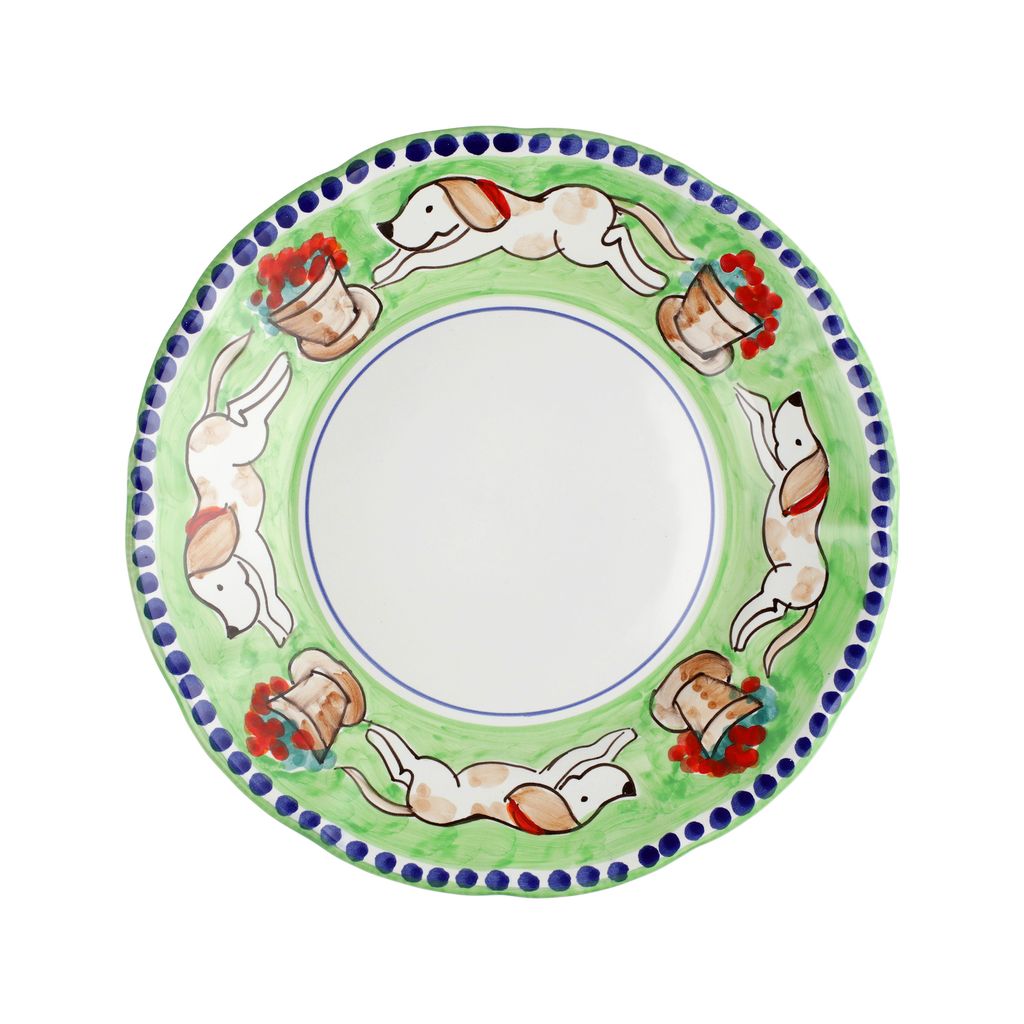 From the famed Amalfi Coast, Campagna, our flagship dinnerware, offers endless possibilities for artistic entertaining with colorful patterns that capture the vitality of the Italian countryside. Our newest design, Cane, features whimsical handpainted pups playfully running through a seaside garden in Positano on the Campagna Cane Dinner Plate.