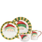 VIETRI's signature holiday collection is created from maestro artisan Alessandro Taddei's childhood memories of stories his mother used to read to him about Babbo Natale, Italy's Santa Claus. Embrace the holiday season with the Old St. Nick Green Hat Four-Piece Place Setting which includes a European dinner plate, salad plate, cereal bowl, and mug.