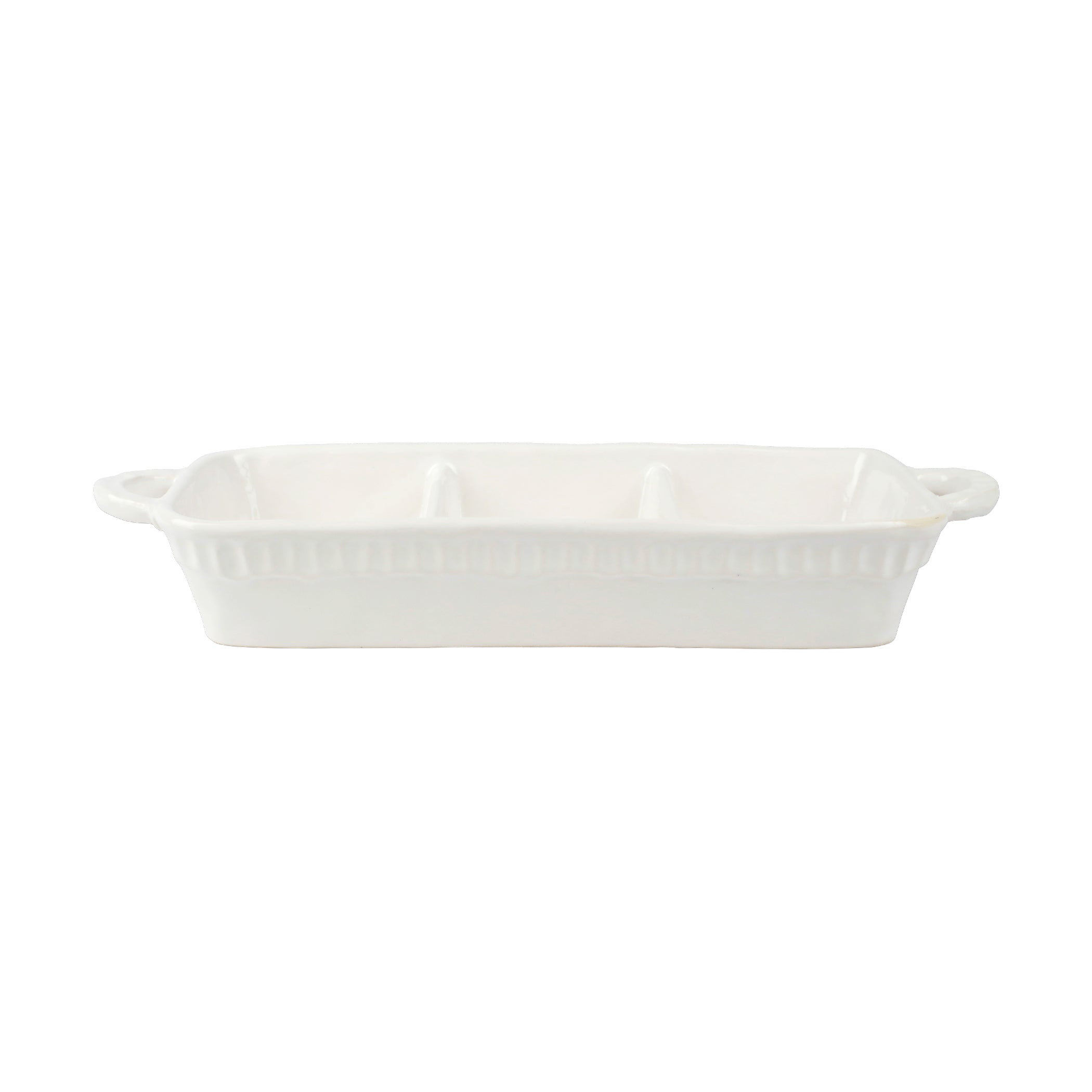 Characterized by handpressed edges, Pietra Serena pays tribute to the architectural details of Florence, Italy during the Renaissance. The Pietra Serena Three-Part Server features a handpressed design around its edges and is a simply beautiful entertaining piece.
