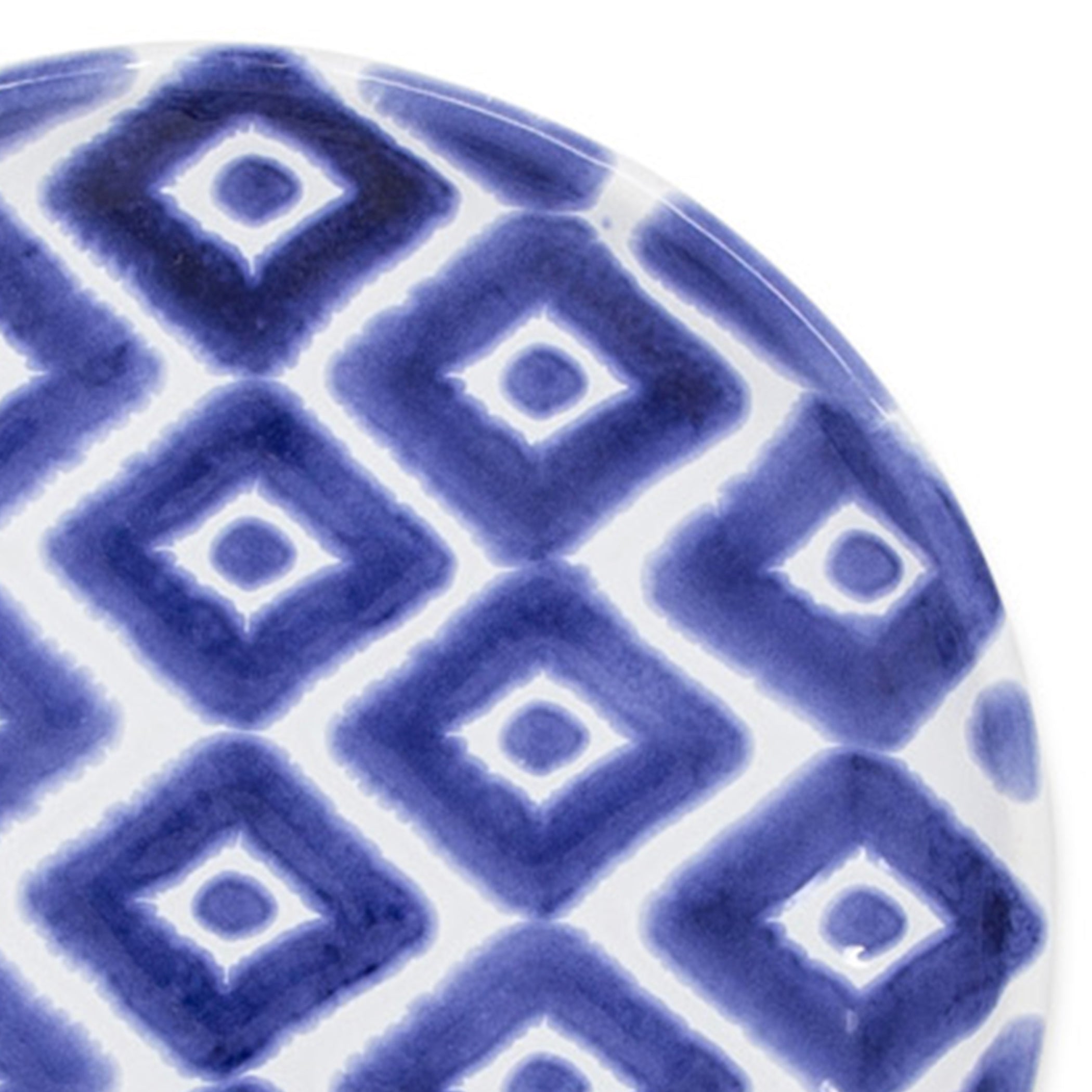 Recreate the beautiful mosaic tiles found in the Greek Isles with the Santorini Diamond Cocktail Plate, painted on hard ceramic in a fun blue and white pattern.