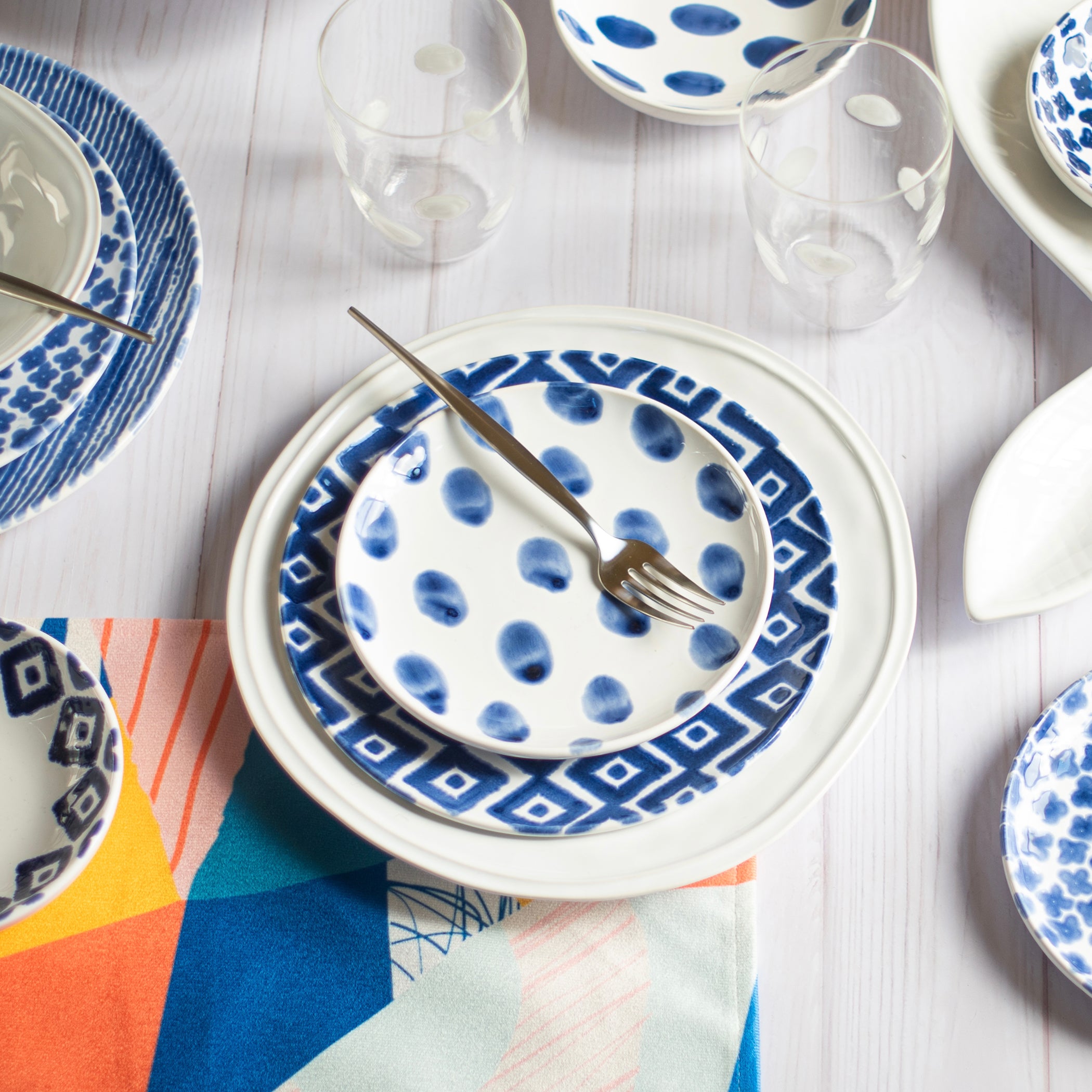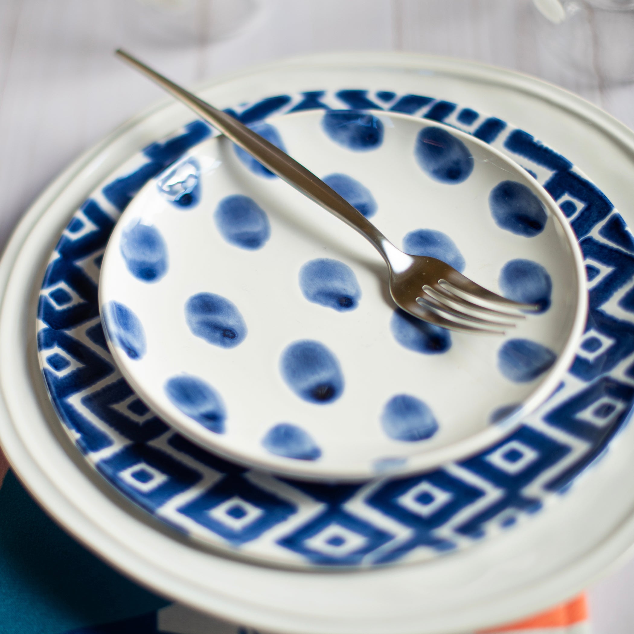 Recreate the beautiful mosaic tiles found in the Greek Isles with the Santorini Dot Cocktail Plate, painted on hard ceramic in a fun blue and white pattern.