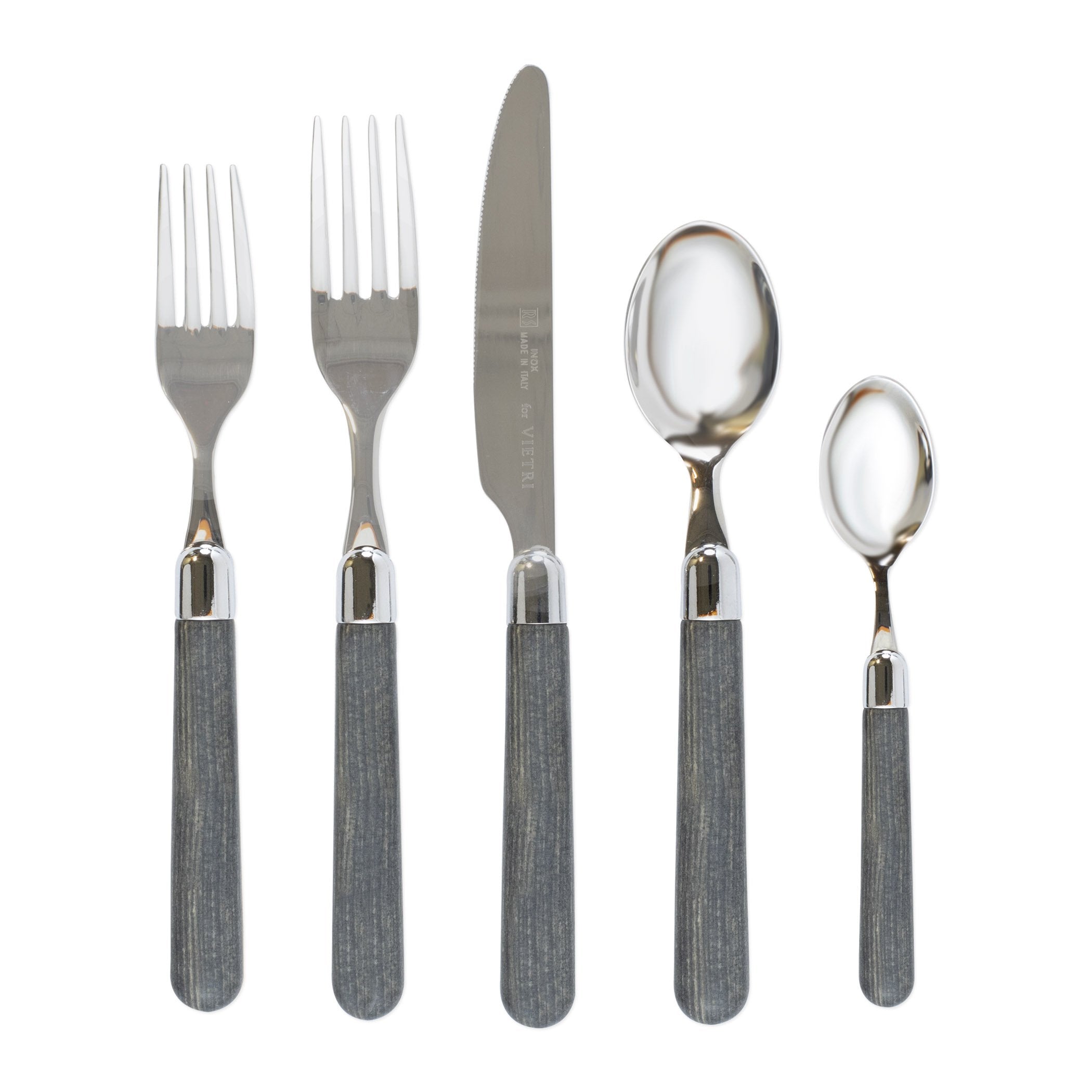 The Albero Five-Piece Place Setting features warm wood handles, with the strength of high-grade polyester and 18/10 stainless steel.