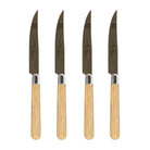 The Albero Steak Knives - Set of 4 features warm wood handles, with the strength of high-grade polyester and 18/10 stainless steel.