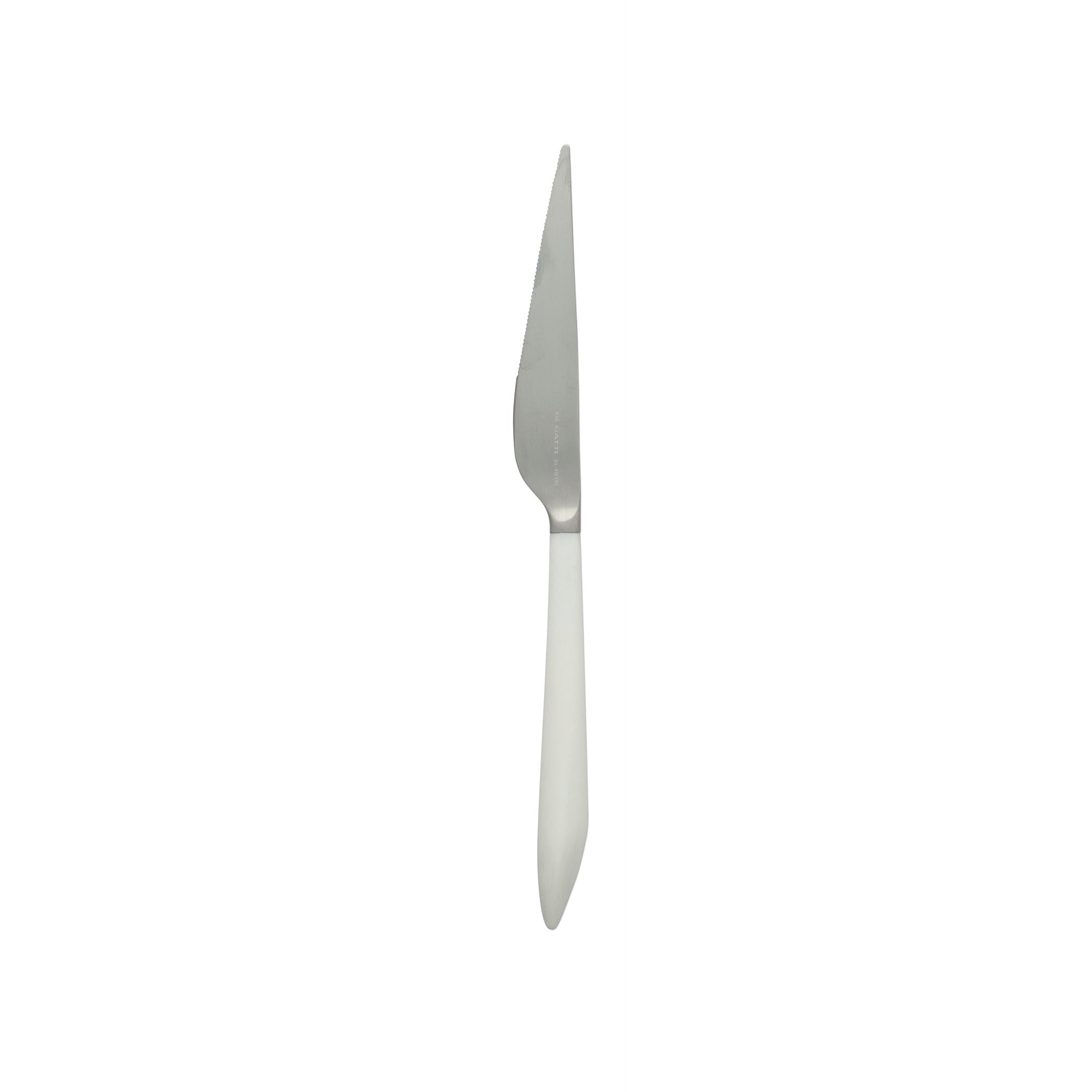 The contemporary matte handle found on the Ares Argento Place Knife provides perfect balance and weight for a luxury flatware experience. Argento, the brushed silver, finishes off the utensil in 18/10 stainless steel and resin.