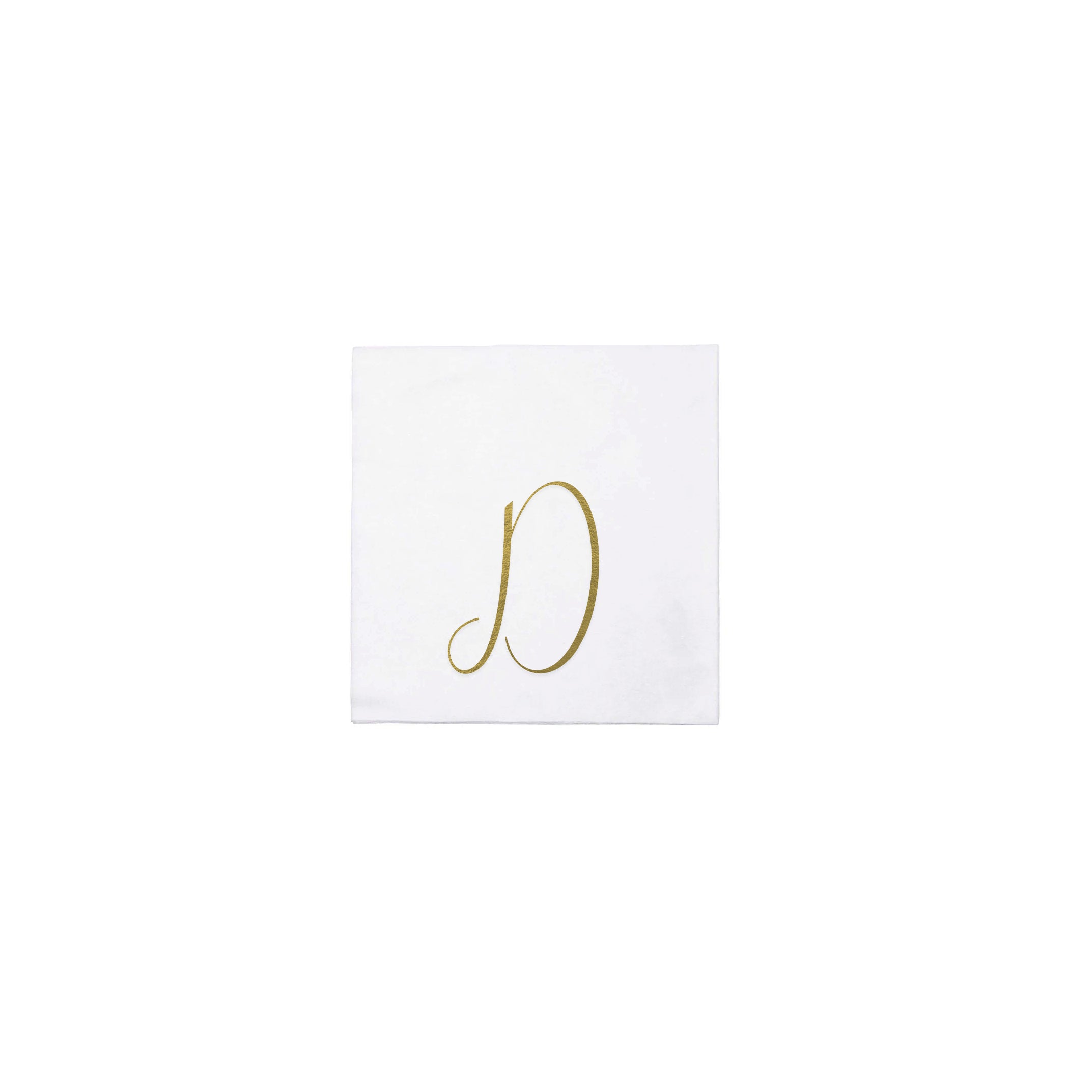 Papersoft Napkins Gold Monogram Cocktail Napkins - D (Pack of 20)