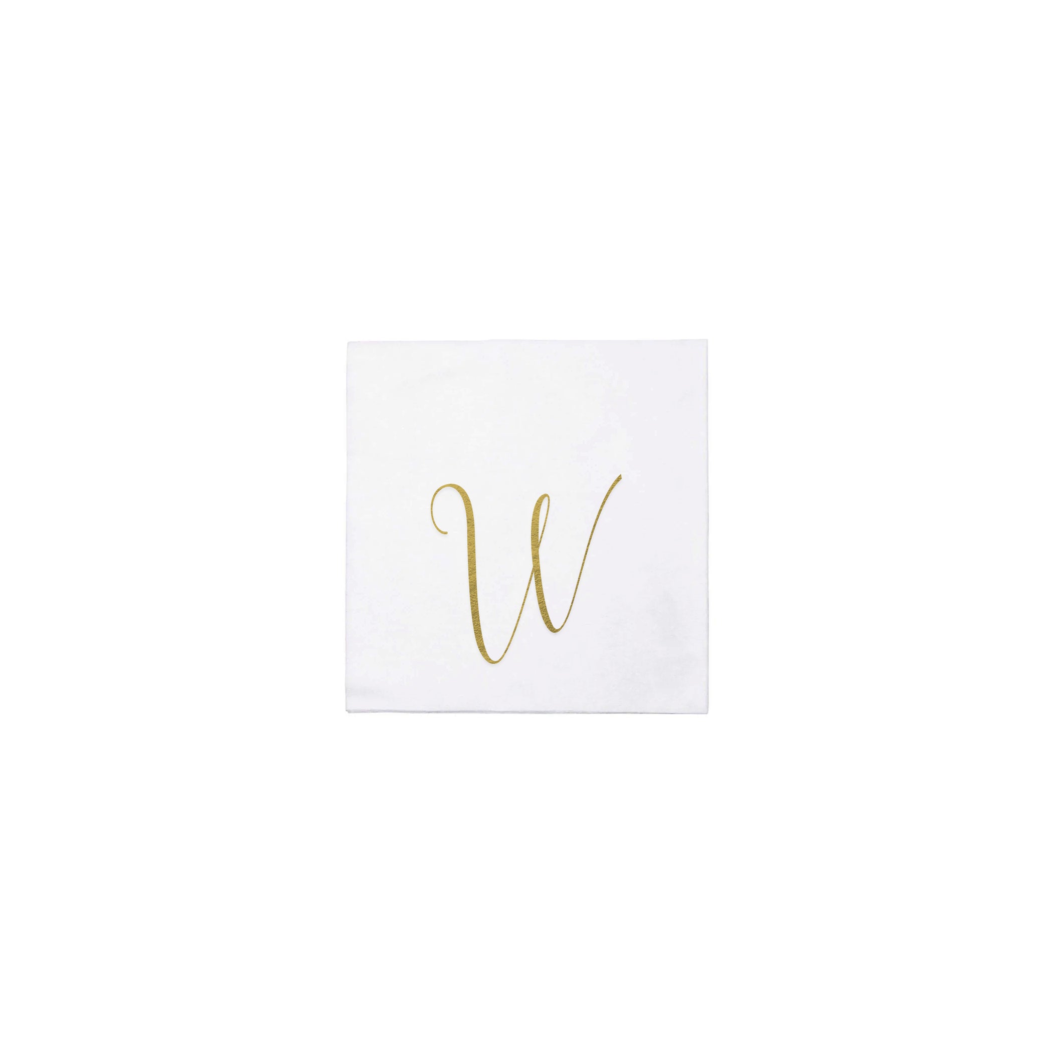 Papersoft Napkins Gold Monogram Cocktail Napkins - W (Pack of 20)