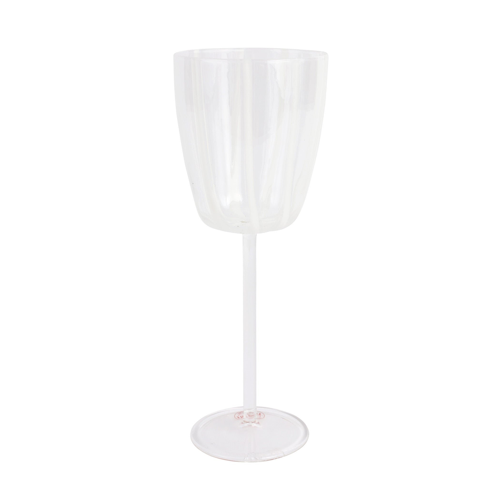 Mouthblown by skilled artisans, the Nuovo Stripe White Wine Glass features painterly stripes gliding down each glass, and the result is a fresh and fun addition to your table.