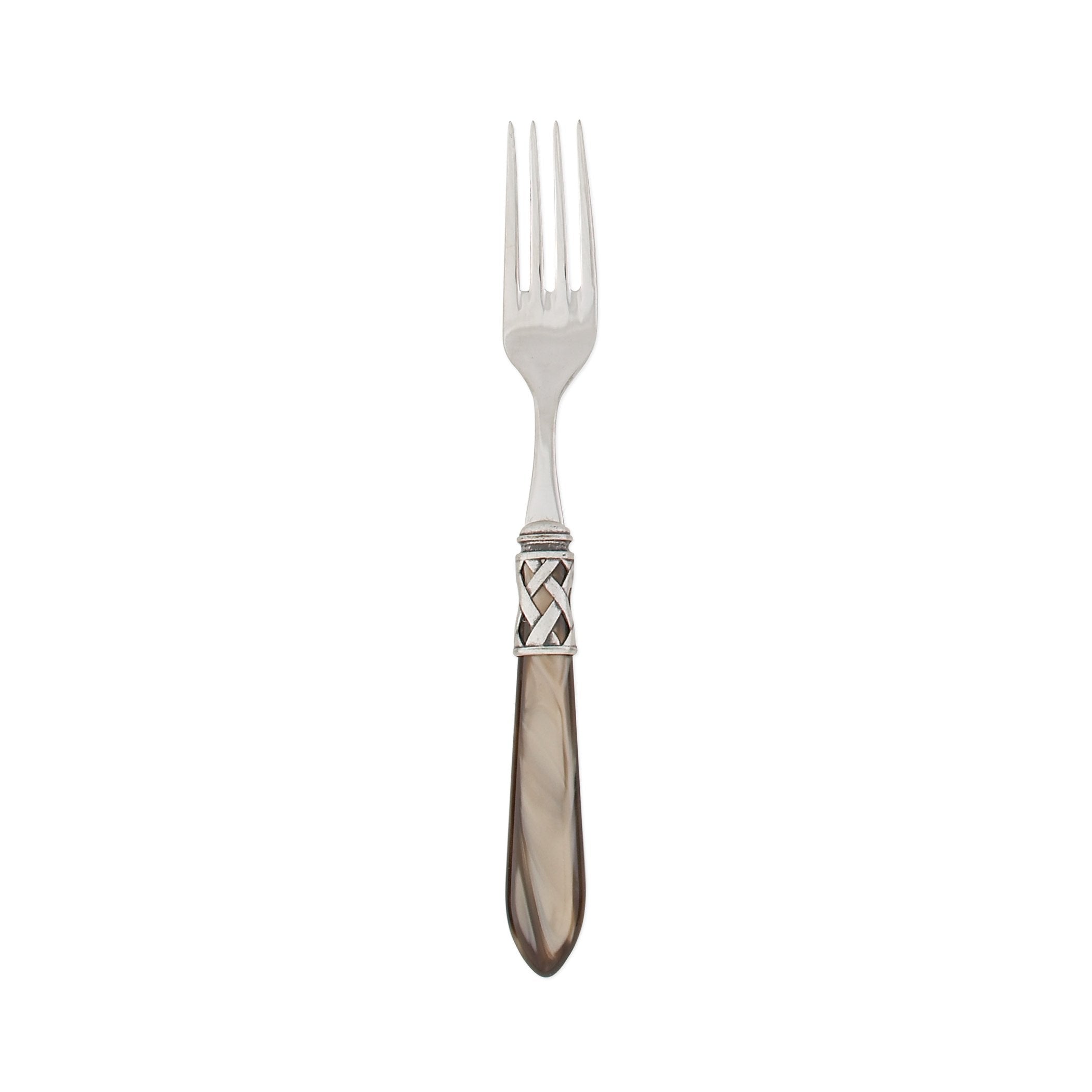 The Aladdin Antique Place Fork features elegant pearlized handles with the strength of high-grade acrylic and 18/10 stainless steel. This piece is also available in our brilliant finish.