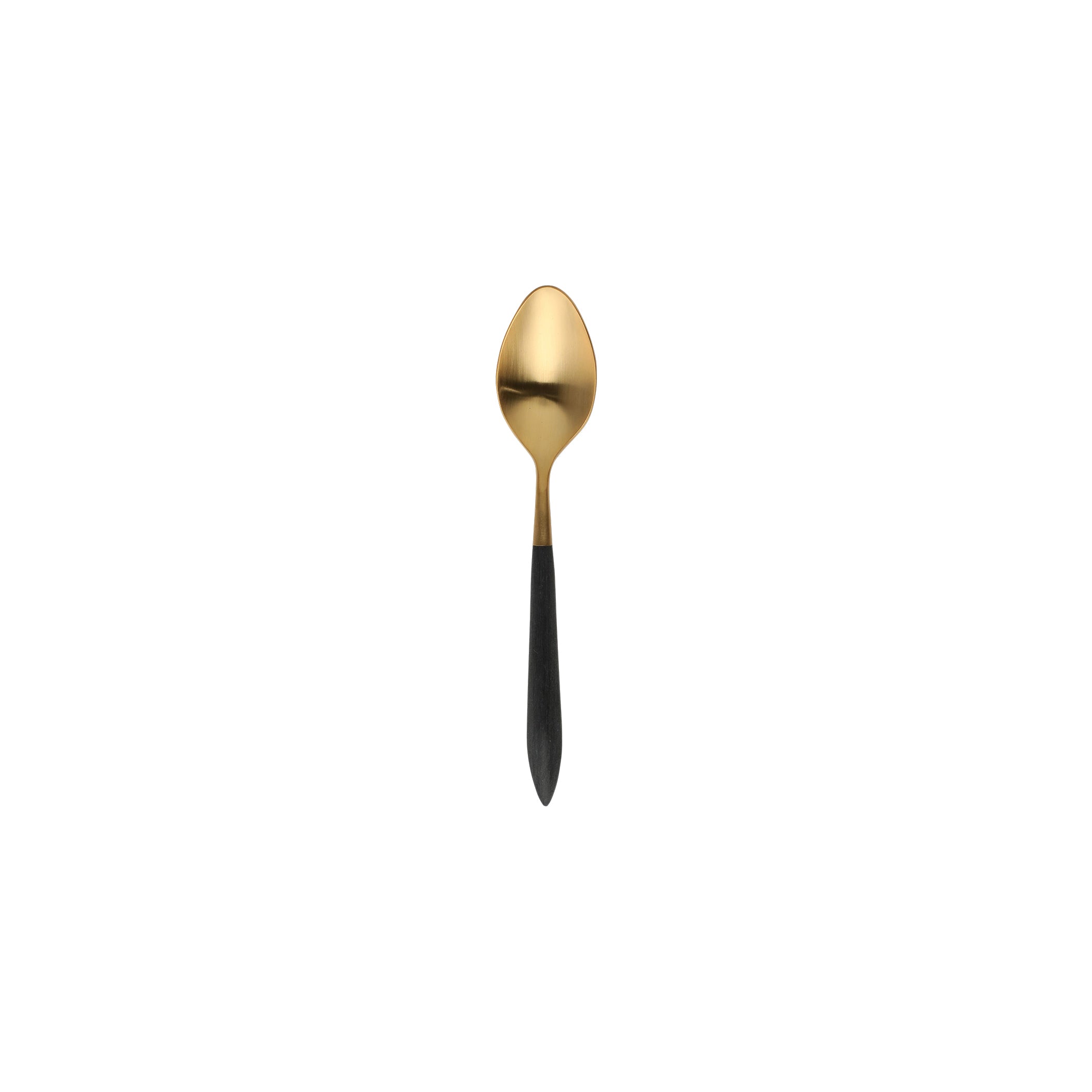 The contemporary matte handle found on the Ares Oro Demitasse Spoon provides perfect balance and weight for a luxury flatware experience. Oro, the brushed gold, finishes off the utensil in 18/10 stainless steel and resin.