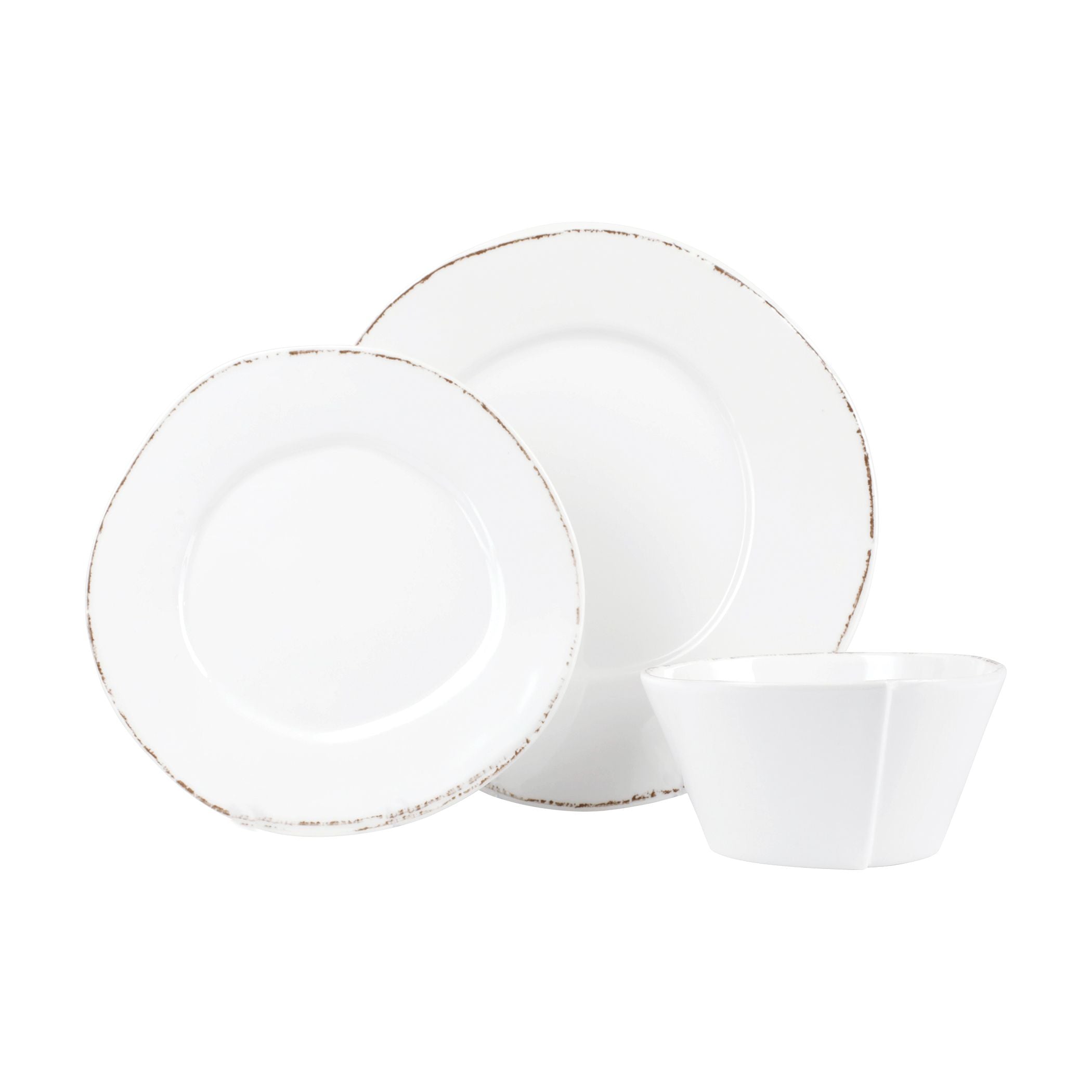 Shatterproof and ultra-chic, the Melamine Lastra White Three-Piece Place Setting replicates the beauty of Lastra in the perfect picnic assortment. Lightweight yet sturdy with a glossy finish, this collection is ideal for outdoor use or meals with children. Each set includes 1 dinner plate, 1 salad plate, and 1 cereal bowl.
