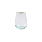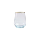 Add sparkle to any setting with a gilded gold rim and varied colored glass that refracts light on the Rainbow Assorted Stemless Wine Glasses.