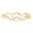The Rufolo Glass Platter features glowing strands on the border of the elegantly ruffled platter. The embellishment is effortlessly beautiful.